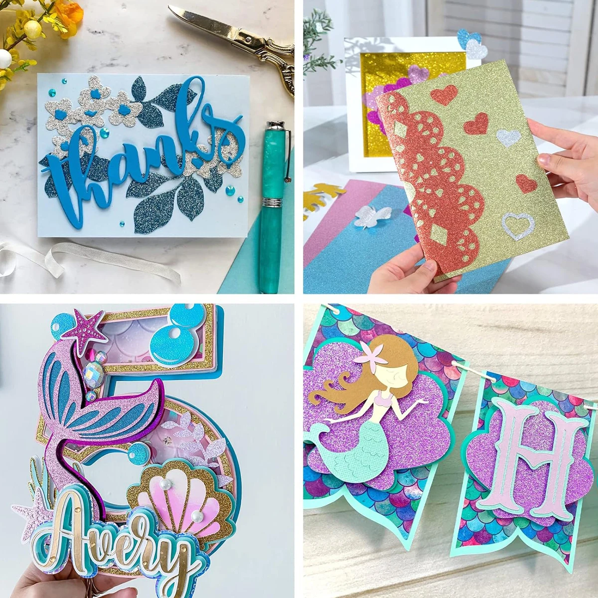 Each sheet features a sparkling glitter surface for eye-catching designs.