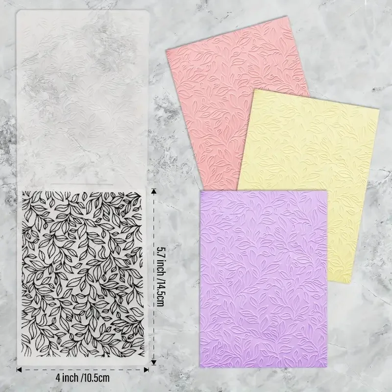 This leaf embossing folder creates beautiful textured patterns on paper crafts.